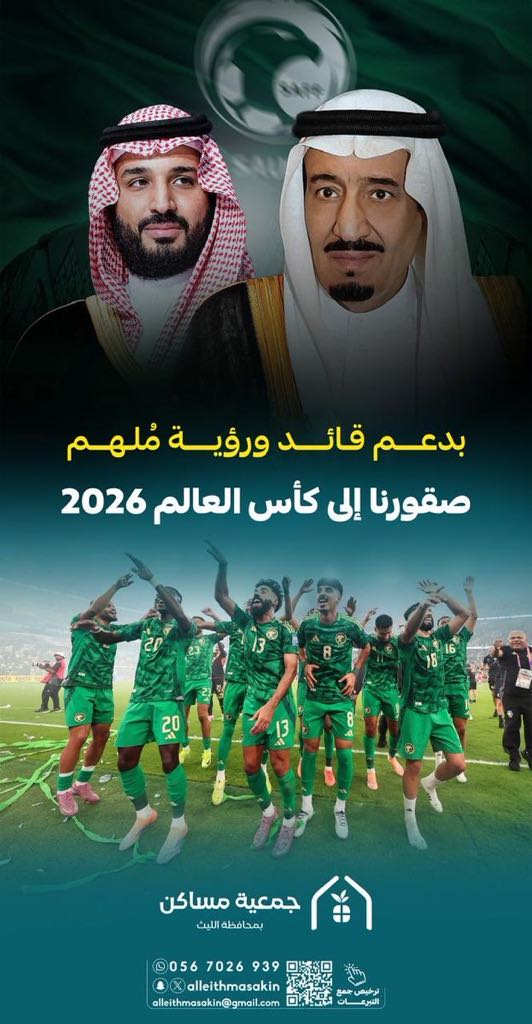 تهنئة بمناسبة تأهل المنتخب السعودي لكأس العالم 2026