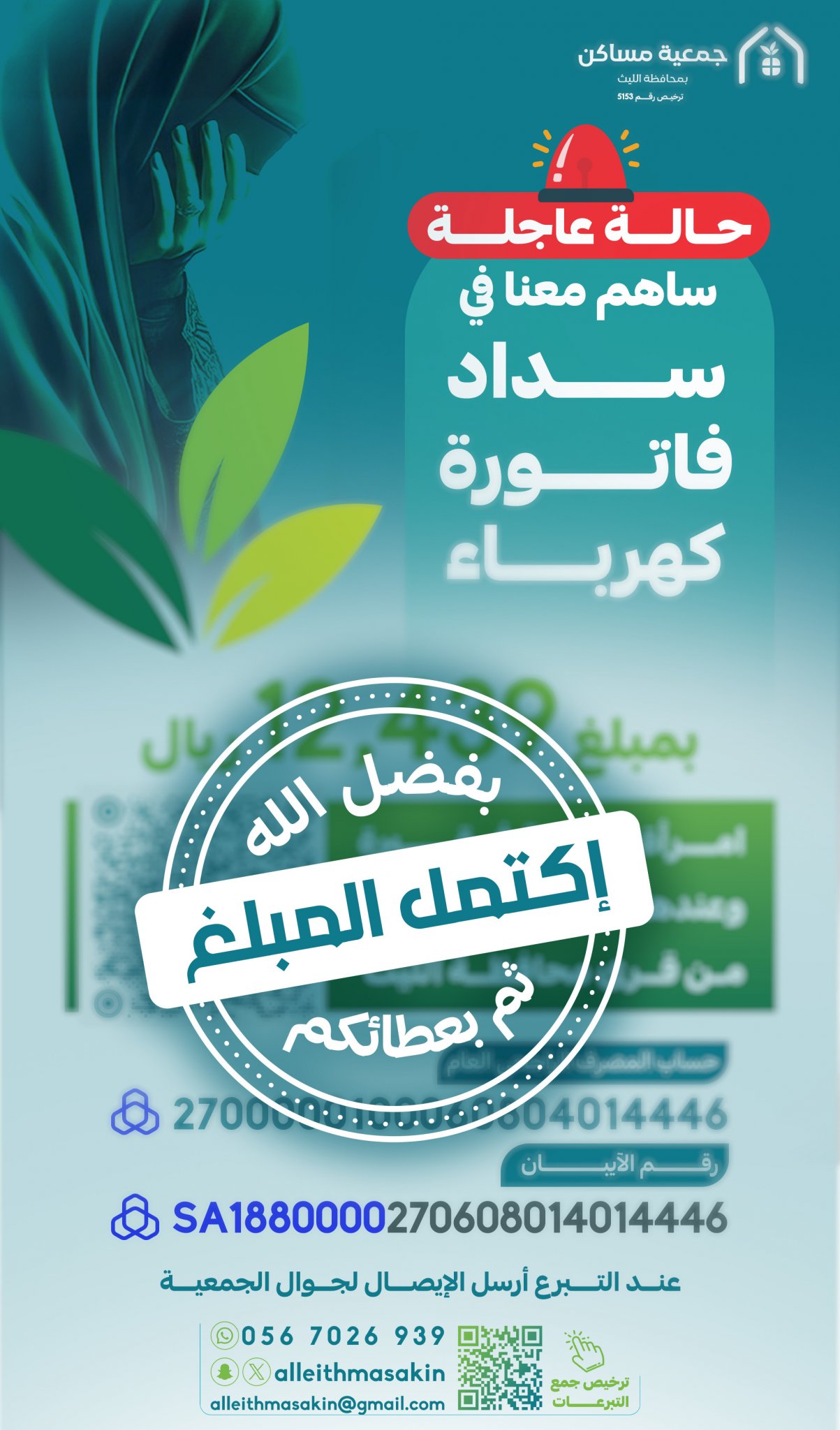 امرأة أرملة فقيرة وعندها أولاد مرضى في قرية من قرى محافظة الليث